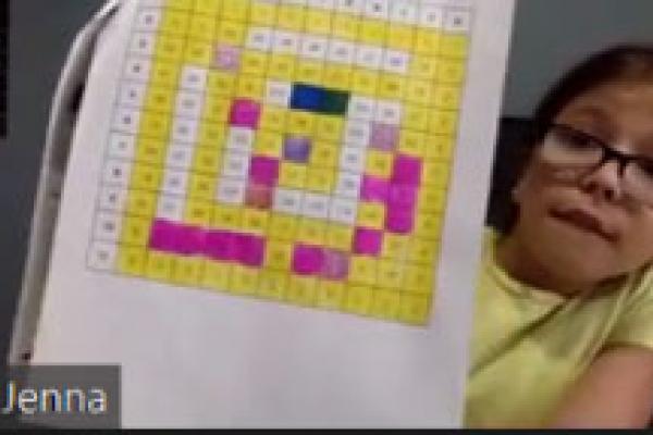 a virtual team for Decoding Starlight. Participants who chose to work alone stayed in the main meeting room with me, and participants who chose to work with a virtual team were assigned to one of seven breakout rooms hosted by trained and experienced 4-H teen girls. Students working with virtual teams binned and colorized their images of the supernova remnant Cassiopeia A (Cas A) collaboratively, in real-time, using a shared Google document instead of a paper handout. Students in the main meeting room completed the steps of the activity using the provided handouts, colored pencils, and a calculator. Both methods were equally educational and engaging. (Virtual option below and colored pencil option to the right).